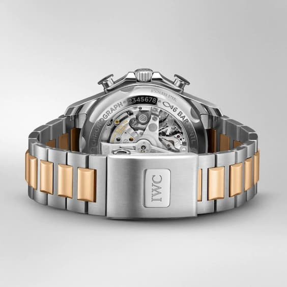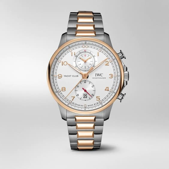 「ポルトギーゼ・ヨットクラブ・クロノグラフ」は、時代に左右されない洗練されたエレガンスを湛えた、航海に適したスポーツウォッチです。強靭さや6気圧という高い防水性をも兼ね備えており、船上やビーチ以外でも様々なシーンで広く大活躍するモデルです。繊細なベゼルとフラットなケースリングを備え、直径44mmのステンレススティール製ケース全体のバランスがさらに優雅になりました。このスポーティーなクロノグラフの文字盤には、特徴的な分目盛りやアラビア数字のアップライト・インデックスなど、「ポルトギーゼ」特有のデザインが採用されています。このモデルにはシルバーメッキの文字盤にゴールドメッキの針と18Kゴールド製アップライト・インデックスが組み合わされています。フライバック機能を搭載したIWC自社製キャリバー89361が、「12時」位置のサブダイヤルに統合されたアワー・カウンターとミニッツ・カウンターで計測タイムを表示し、68時間のパワーリザーブを蓄えます。また、表面にポリッシュ仕上げとサテン仕上げを施した高品質ステンレススティール製ブレスレットが、快適な装着感を提供します。