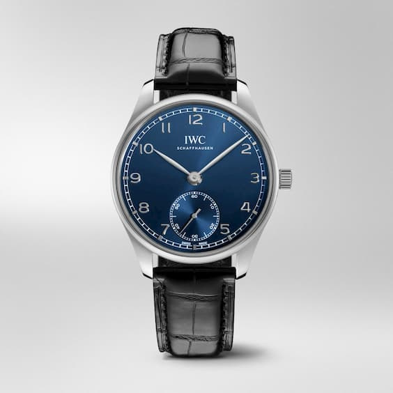 特徴的な分目盛りと「6時」位置にスモールセコンドを配しただけのシンプルですっきりとした文字盤。これは、1930年代末にIWCが発表したRef.325とともに生まれ、「ポルトギーゼ」コレクションの長い歴史の中で一貫して受け継がれてきたデザイン様式です。そして今、いつの時代もモダンな印象を与えるクラシカルな文字盤デザインが、40mmとコンパクトなケース径の新モデル「ポルトギーゼ・オートマティック 40」で復活を遂げます。搭載された堅牢で高品質な自動巻きムーブメント、IWC自社製キャリバー82200は、耐摩耗性に優れたセラミック製のパーツをペラトン自動巻き機構に使用し、60時間のパワーリザーブを蓄えます。このモデルには、ステンレススティール製ケースにブルーの文字盤、ロジウムメッキの針とアップライト・インデックスが組み合わされています。ブラックのアリゲーター・ストラップに配された新開発のバタフライ・フォールディング・クラスプが極めて快適な装着感を実現します。