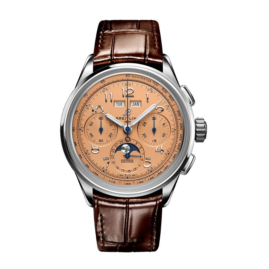 この最新世代のプレミエ クロノグラフでは、タイムレスなエレガンスを蘇らせました。クロノグラフ、デュオグラフ、ダトラはプレミエの象徴的なコンプリケーション機構を搭載し、ブライトリングの時計製造技術が最高レベルであることを示しています。
