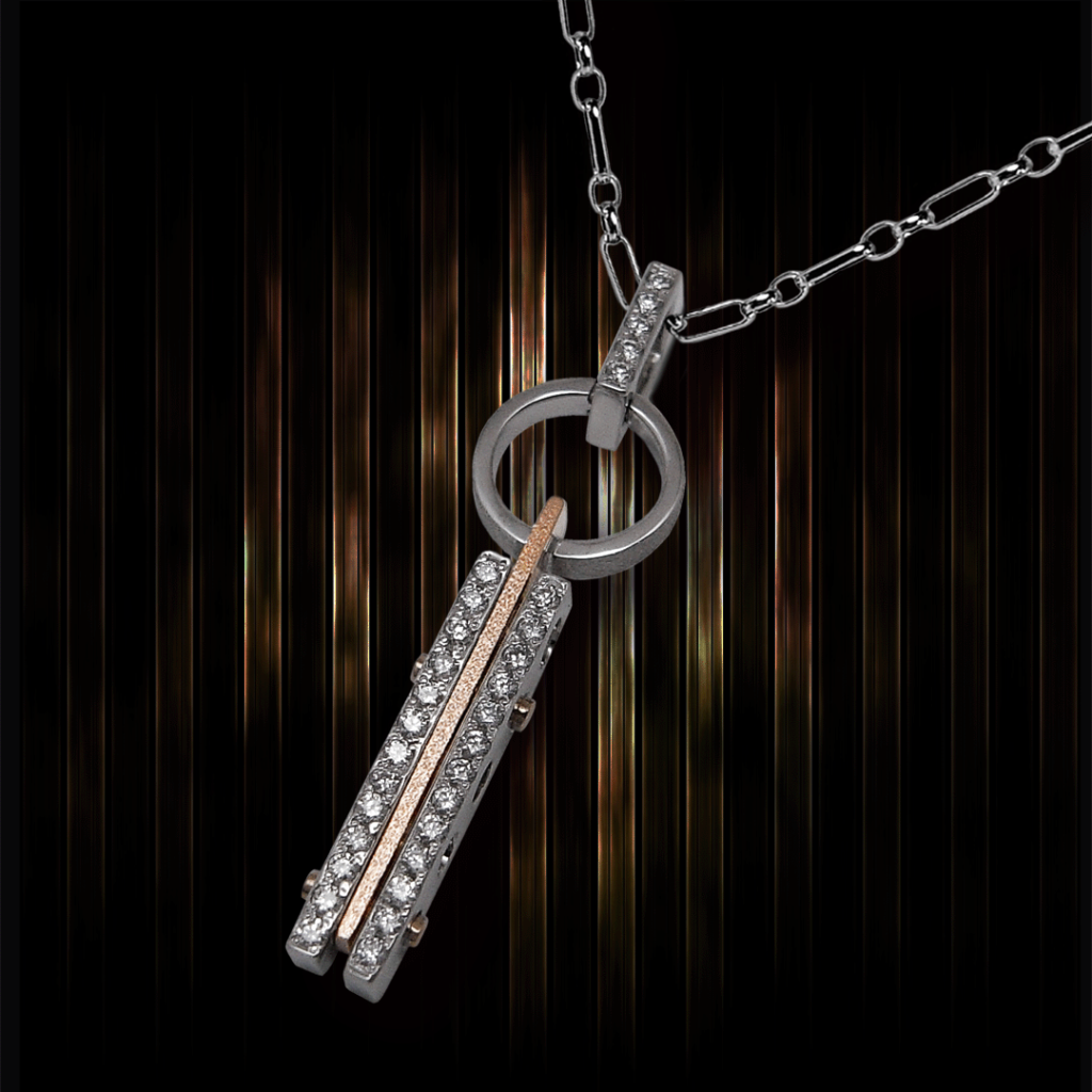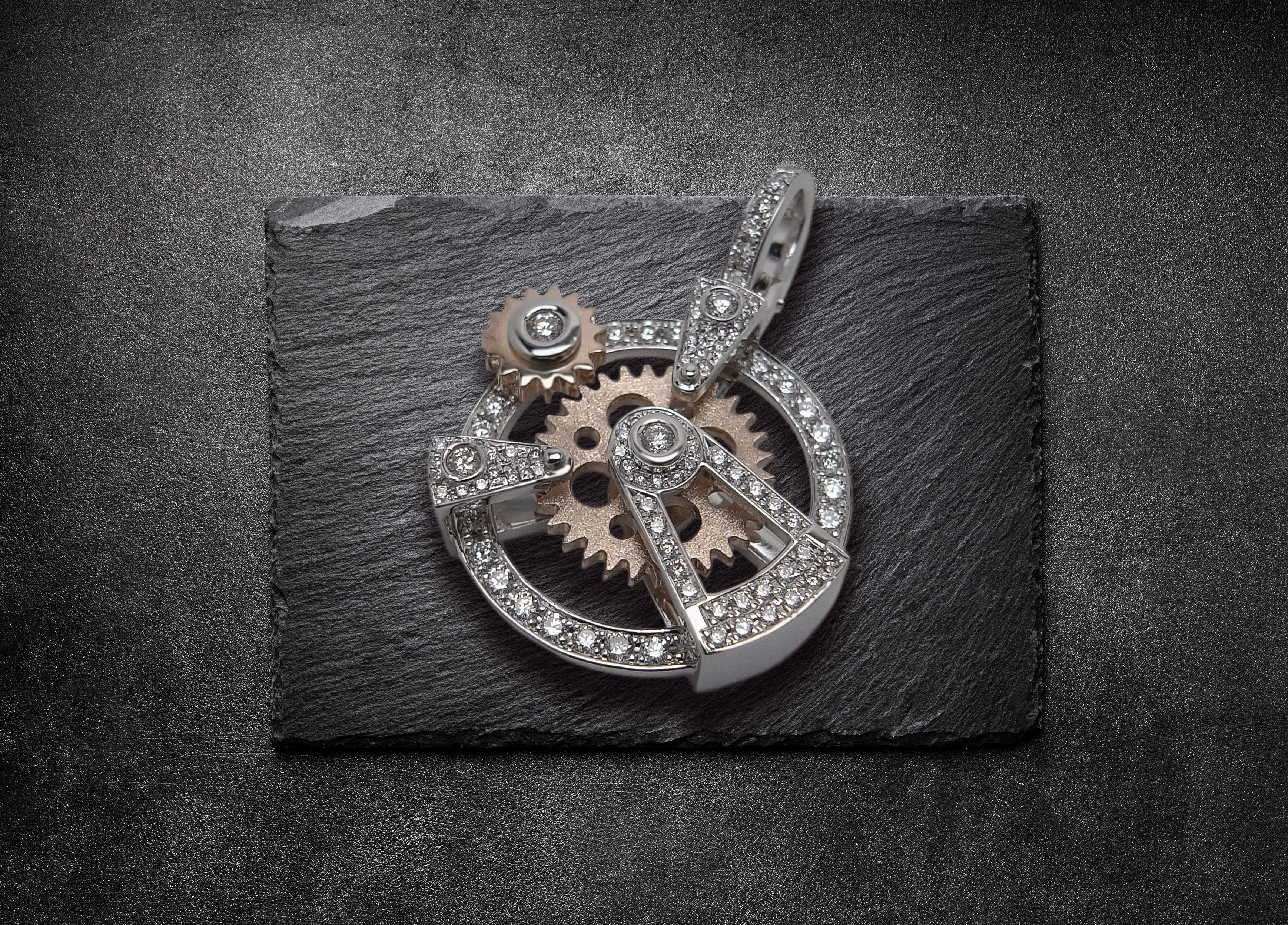 こちらはロングセラーのペンダントヘッド。その最新バージョンでフルダイヤ仕様になります。