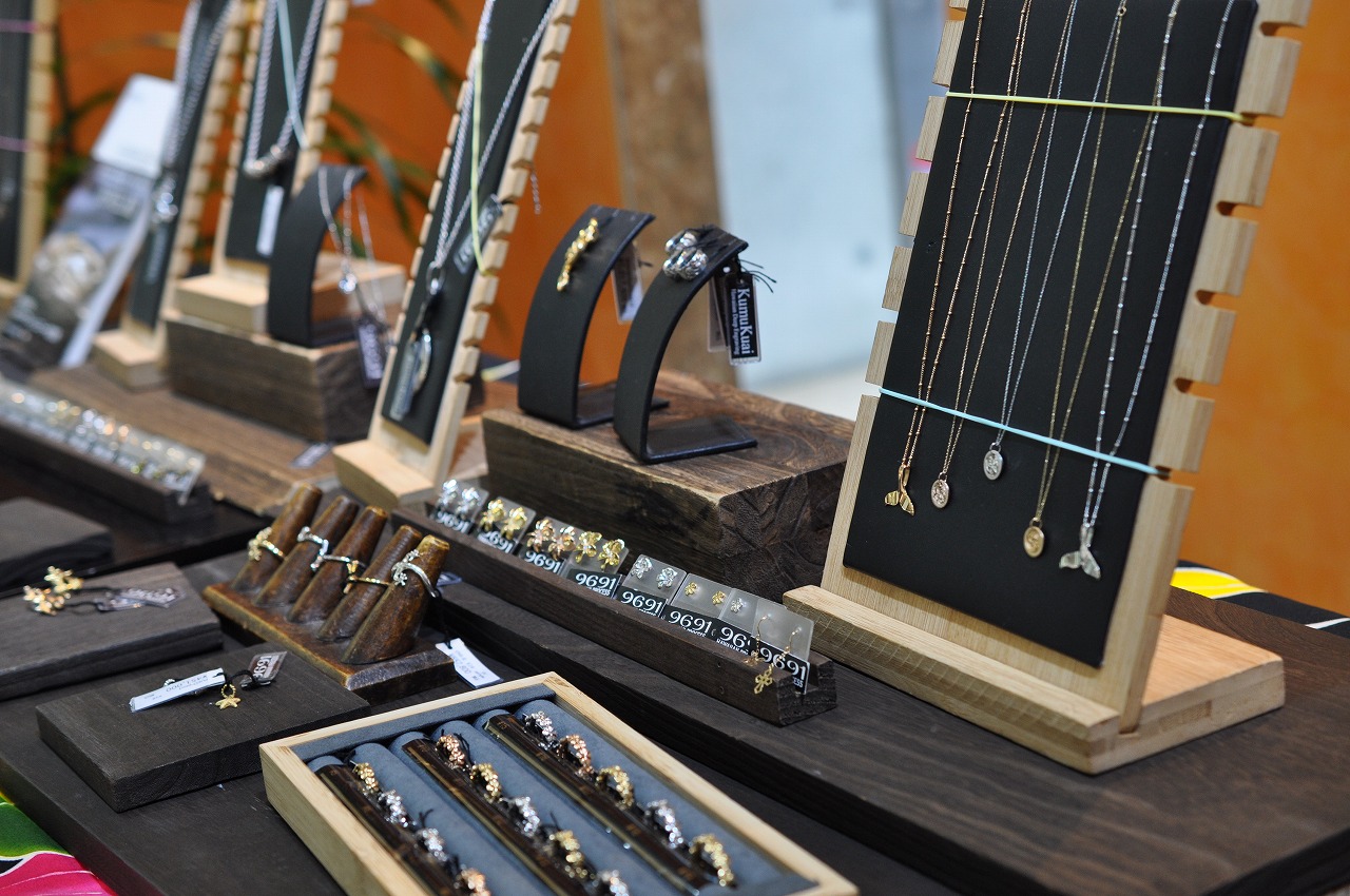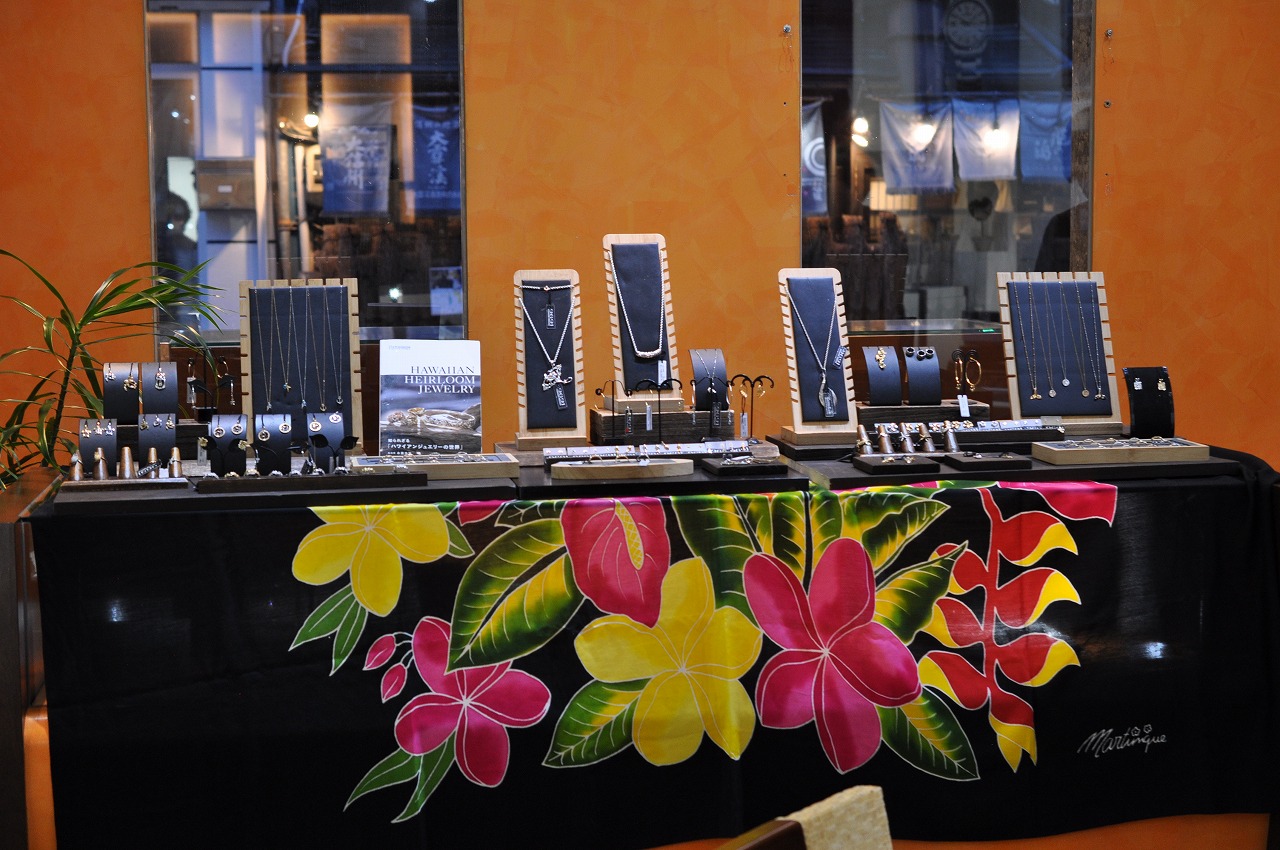 本日4月3日(金)の夕方より会場の設営が始まり、とても素敵なハワイアンジュエリーの空間が完成