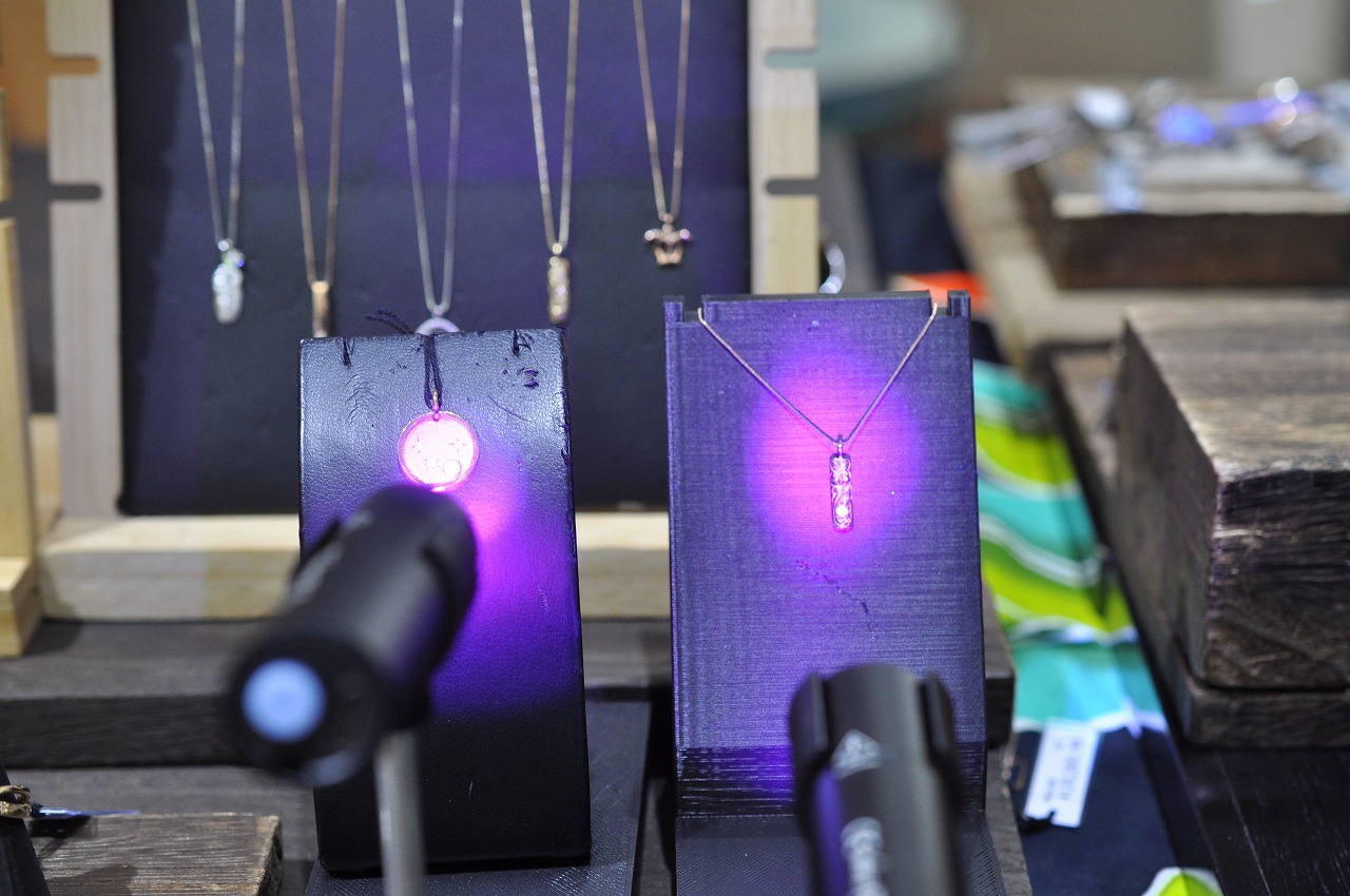 光の加減で上手く写真で表現出来ませんでしたが、ブラックライトを照らした作品がとても美しく
