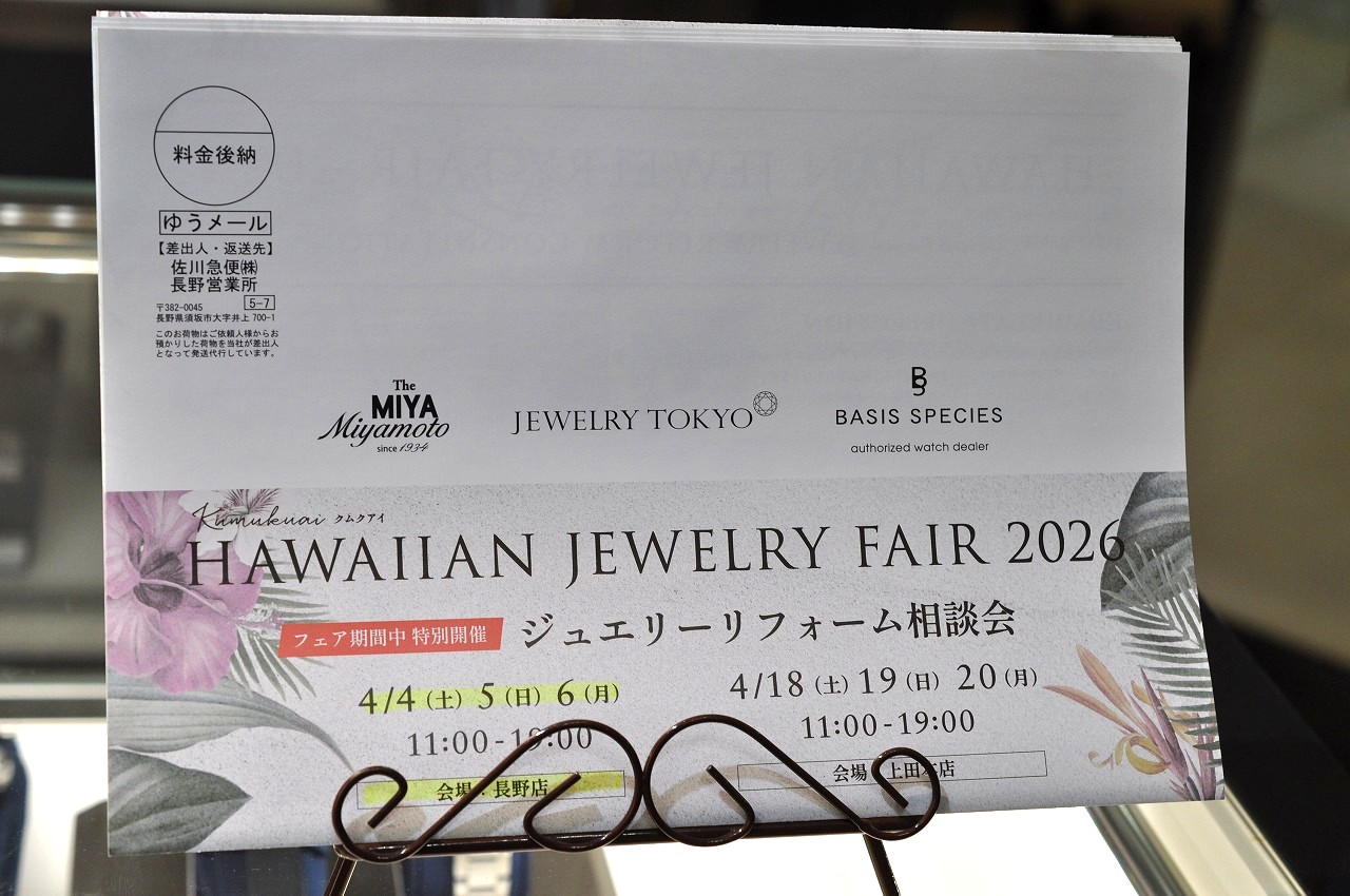 4月4日(土)、5日(日)、6日(月)の3日間、ジュエリー東京長野店にて2年ぶりの開催となります