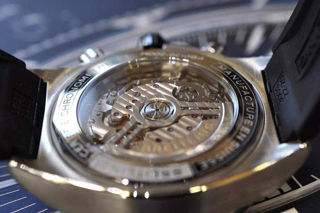 ブライトリングの自社製クロノグラフムーブメント『キャリバーB01』です。