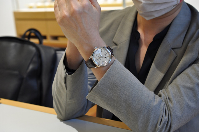 2025.11.26 S.N様 GRAND SEIKO 候補モデル1点に絞り込まてご来店されたS.N様。時計のサイズに不安を感じられてましたがお目当ての実機をご確認され、ご納得の決断をいただきました。モデルはグランドセイコーの機械式でGMT機能が搭載のこだわりモデル♪憧れの方が着けていたのがきっかけでしたが素敵な自分磨きになりましたね。□ 2025年11月ご購入・S.N様 [ グランドセイコー|SBGM221|エレガンスコレクション ]