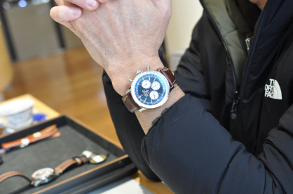 2026.02.15 M.Y様 BREITLING M.Y様は、以前からずっと秘めていた想いがございました。もっとデカいナビタイマーが欲しい!当然選んでいただいたのはナビタイマークロノグラフの46㎜サイズ!ブルーのダイヤルにAOPAのロゴがお気に入りポイント。同時にブラウンのカーフストラップもご注文いただきました。ベルトの付け替えも楽しみですね♪□ 2026年2月ご購入・M.Y様[ BREITLING|ナビタイマーB01クロノグラフ 46|AB0137211C1P1]