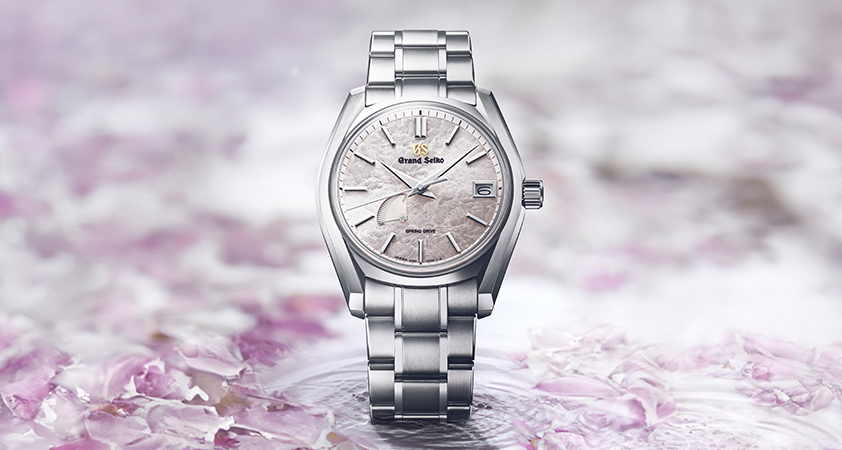水面を覆う桜の花びらを表現したスプリングドライブ「花筏(はないかだ)」