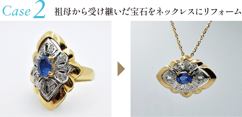 宝石や素材を活かしながら、ご希望に合わせて新しいデザインへ作り替えることです。リング、ネックレスなどへのアレンジもご相談いただけます。