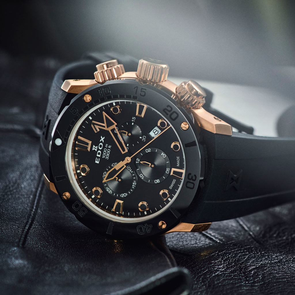 パワーボートレースのタフでダイナミックな世界観を表現した、機能性と防水性に優れたダイバーズウォッチ。