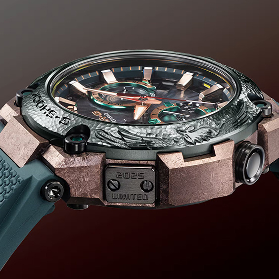 ケースは、刃文に見られる沸(にえ)を独特の模様で表現。また、りゅうずとボタンには「クラッドガード構造」を採用しています。