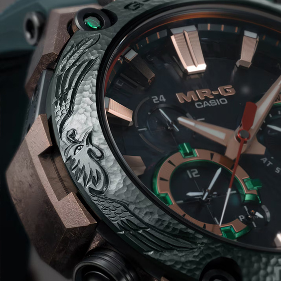 彫金師・小林正雄氏が制作した刀の鐔(つば)をモチーフにMR-Gの「強さと美しさ」を表現したモデルです。